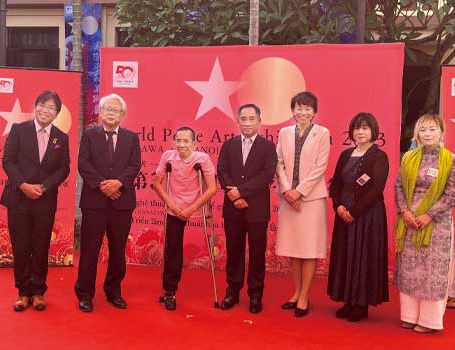 展覧会場には日本人アーティストによる日本画、洋画、彫塑、陶工芸、写真、書道、建築などの作品201点が展示され、平和へ向けたメッセージが、ベトナム戦争の爪痕を今も心に残す現地の人々に届けられました。