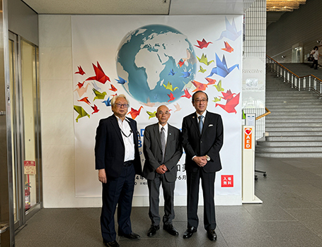 来場されたご来賓(左から、国際平和美術展 名誉顧問 元UNESCO 日本国政府代表部特命全権大使 木曽功氏、広島県原爆被害者団体協議会 理事長 佐久間邦彦氏、広島市長 松井一實氏)